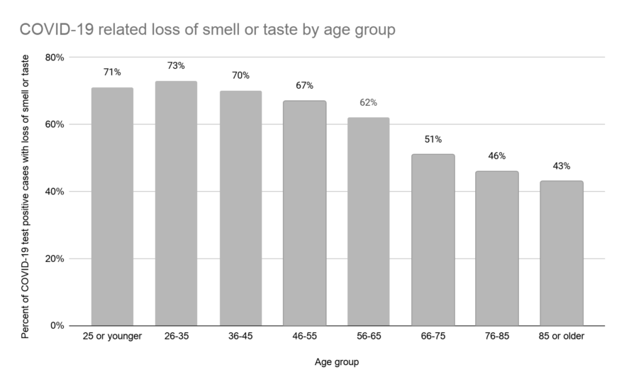 Early in the outbreak, the loss of smell and taste was recognized as a means to distinguish between patients with COVID-19 and those with simple colds or flu. That is, if you felt sick and had a loss of smell or taste, you were much more likely to have COVID-19 than another respiratory infection (1, 2).