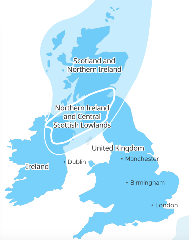 The Scottish Highlands, the Northern Isles, Southwest Munster, and Galway are the least common.