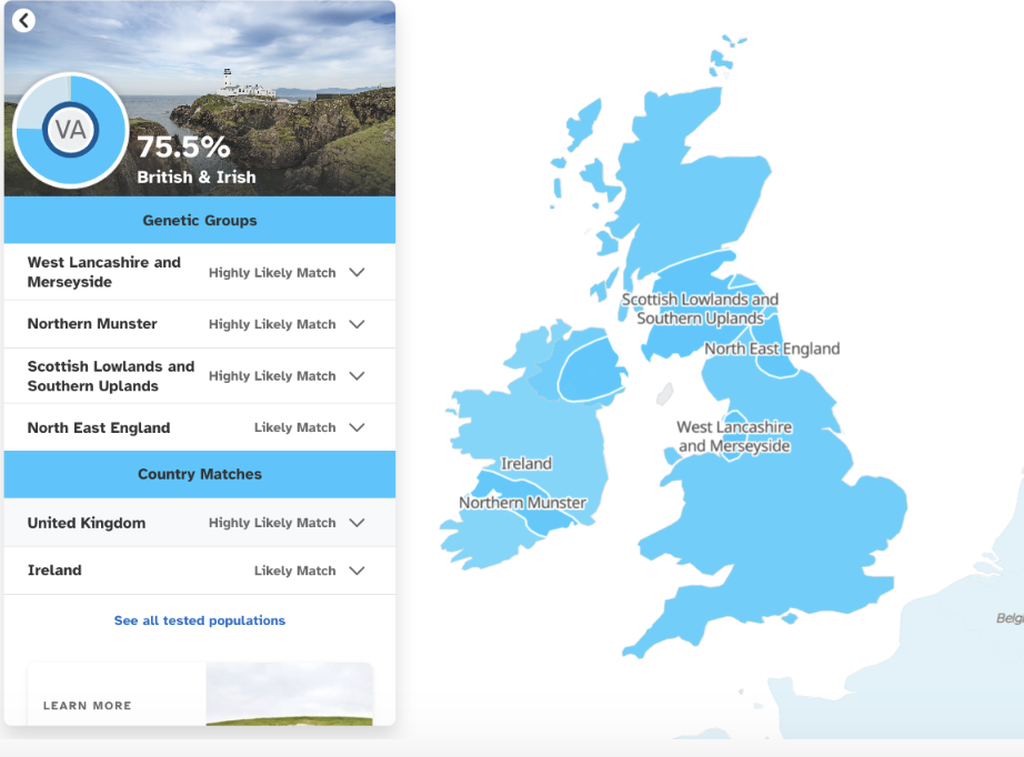While customers may receive a likely or highly likely match to one of these Genetic Groups, this update does not provide more breakdowns for customers’ British & Irish ancestry percentages.