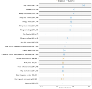 In fact, there are many factors, both genetic and non-genetic, that can contribute to lung cancer risk that are not related to smoking. Environmental exposures, other health conditions, lifestyle, and genetics can all play a role. Internal 23andMe data found that a family history of lung cancer, along with different types of allergies or rhinitis, the stuffed or dripping nose caused by allergies, were all associated with lung cancer, but that association does not mean that they were causal.