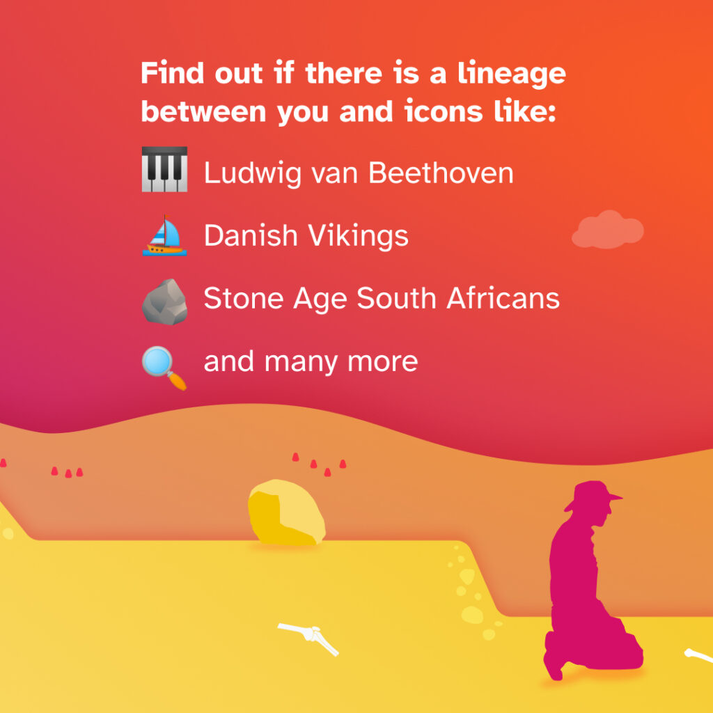 Are you distantly related to the legendary, like the great musical genius Ludwig Van Beethoven? Perhaps you are genetically related to a high-status Viking woman from the 9th century who was buried in an ornate coffin with ornaments made of copper and a comb made from antlers? Maybe you’re linked to an African female Hunter-Gatherer buried with her bow and arrow and an ivory armband or a Caquetio man found with shards of decorated pottery at a site in Curaçao that dates back to before the first colonizers arrived in the Americas.