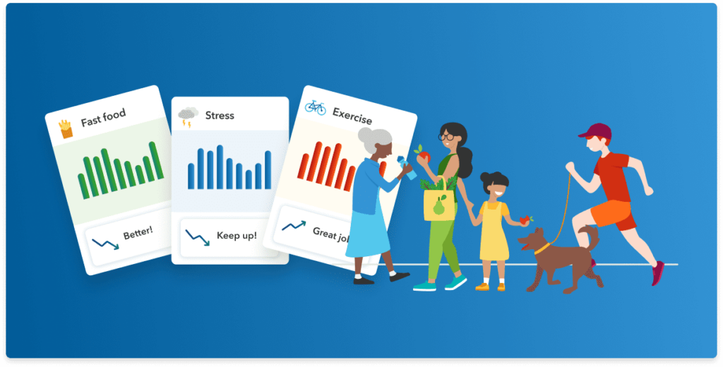 Your activity data from your phone and wearable devices, as well as your answers to those questions, allow you to compare how you are doing with other 23andMe customers, who have consented to participate in research. We’ll be able to show you how many of your daily habits, like your daily steps, your exercise routine, your veggie intake, your red meat consumption, your stress levels, compared to the thousands of individuals in our research community.