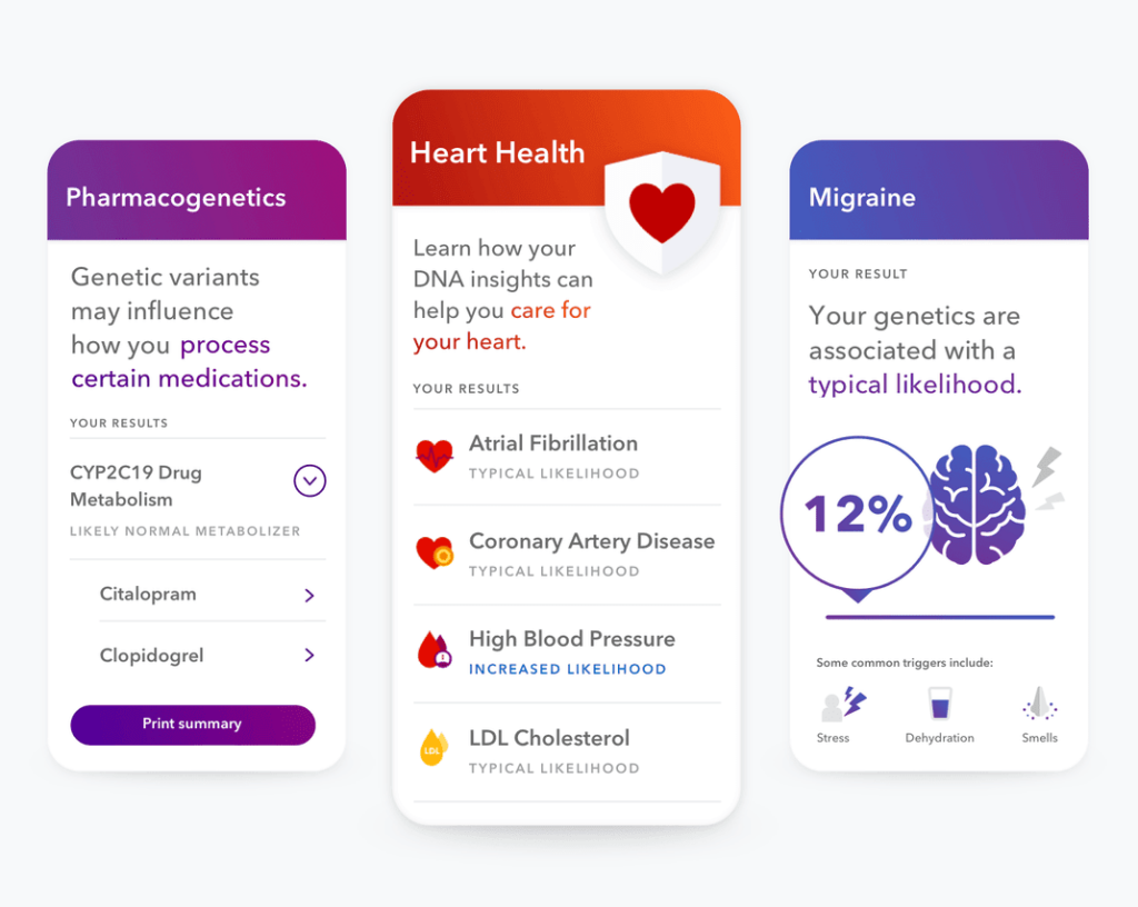 This premium content includes Pharmacogenetics reports,* which can help you learn about how your DNA may impact the way your body processes certain medications; genetic reports Powered by 23andMe Research, which can provide insight into your likelihood of developing conditions like high blood pressure, atrial fibrillation, and migraines; as well as enhanced ancestry features including advanced filtering and access to more DNA relatives.