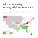 Among black Americans, those with the highest percentage of African ancestry also live in southern states, especially South Carolina and Georgia. The percentage of the population who are African Americans are also highest in those states, but there are also differences among states with similar percentages of African Americans.
