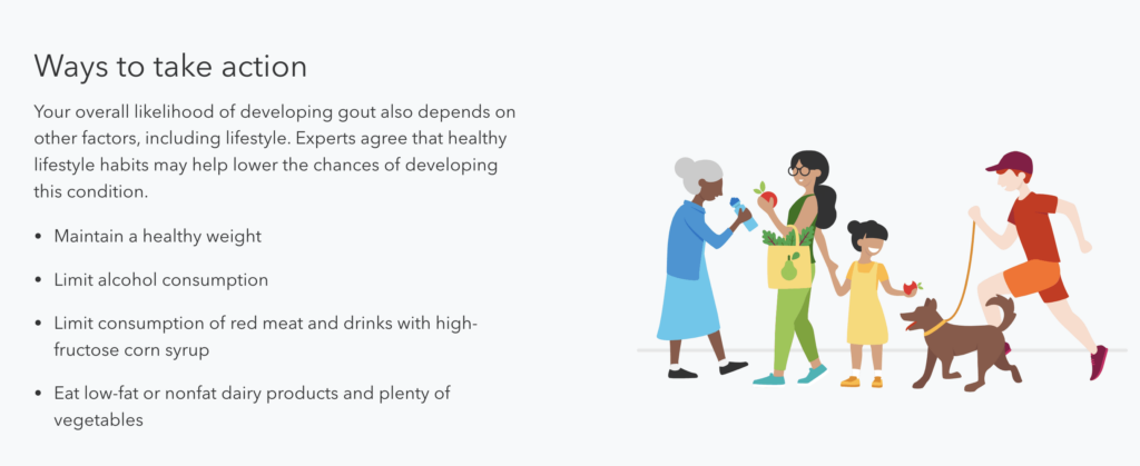 The bright side is there’s still an 81% chance that I won’t develop gout in my life, and I may be able to reduce my chances even more through lifestyle modifications. What can I do?