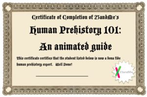 You can check how well you really were paying attention by trying our “quiz” after the videos (and you stand a chance of winning a $25 Amazon Gift Card). We’ll be announcing the correct answers and the winner of the contest on Wednesday, September 5th. Upon completion, you can take pride in your new knowledge by printing out a certificate that signifies your new human prehistory expert status!