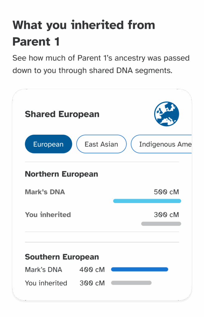 This innovative experience uses the DNA you share with close and distant relatives to piece together the genetic profiles of your ancestors, revealing insights into their ancestry composition and what they passed down to you.