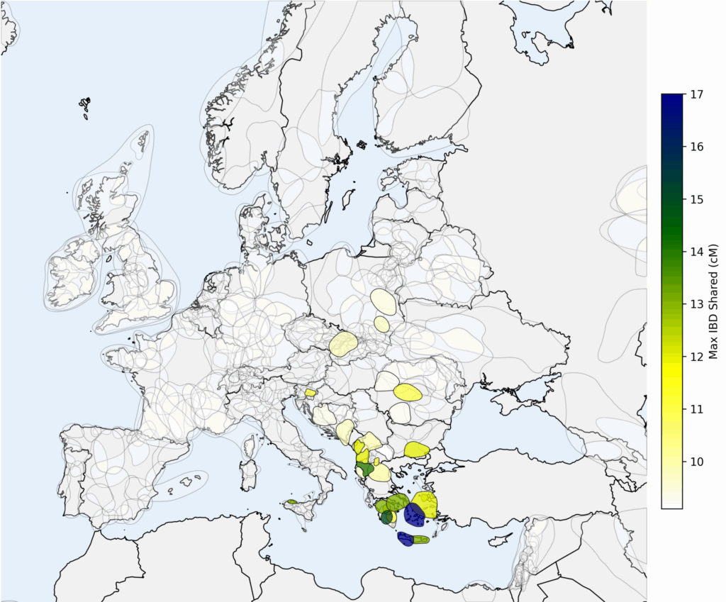 Many of the Roopkund B individuals received matches to Genetic Groups in south eastern Europe, with the strongest connections to groups in Greece and Crete–exactly mirroring the findings of the original study!