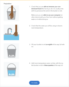 During the online procedure, we ask some 23andMe customers who consented to participate in the study to place a hand in icy water for up to three minutes. This “cold pressor test” helps to gauge pain sensitivity, as does the questionnaire where participants need to imagine painful situations.