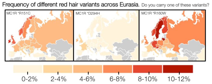 On a personal level, I felt reassured that what I knew about my family’s history was consistent with what I found to be true about red hair. But even more, I realized just how widespread red hair variants are across Europe, especially its northern reaches.