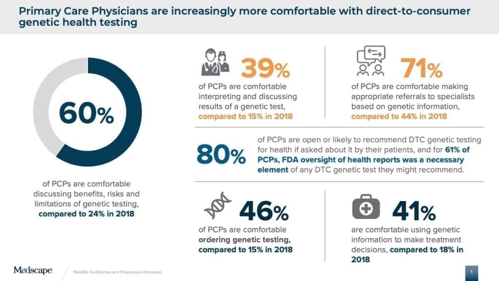 According to the study — done by Medscape and in collaboration with 23andMe — primary care physicians’ comfort level in discussing DNA testing results with patients has more than doubled since 2018.