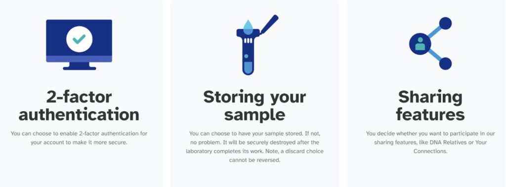 The Privacy pages also highlight some of the privacy-related choices a customer can make and what each of those choices means. For example, we explain what choices you have regarding the storage of your biological sample, participation in features like DNA Relatives, or participation in 23andMe’s groundbreaking Research program.