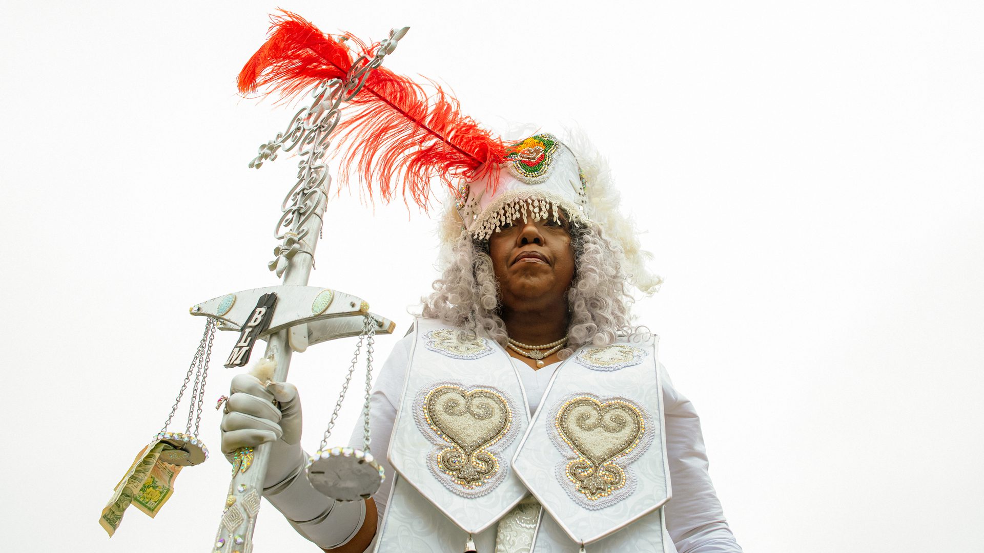 She met Skyla Hearn, a Chicago-based archivist and special collections librarian, while attending a Cultural Heritage and Social Change Summit. Harrison-Nelson was preparing to lead an educational performance about the traditions and history of Mardi Gras Indians and she was wearing a purple lace dress and a matching Nigerian gele. Hearn says she knew Queen Reesie was someone special.