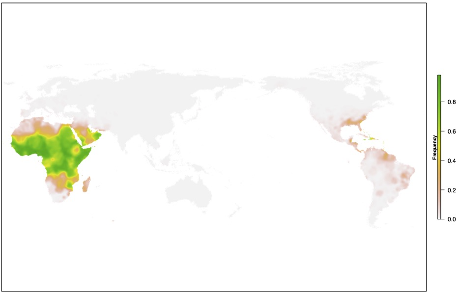 Scientists believe this variant became common in certain populations because it helps protect against Plasmodium vivax, a malaria parasite that relies on the Duffy antigen to infect red blood cells. (The variant does not protect against other types of malaria.) Over generations, people in regions where this malaria parasite was widespread were more likely to inherit this protective variant, and it remains common today in people with ancestry from some malaria-endemic regions.