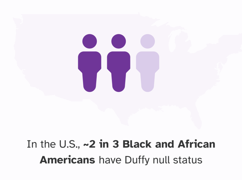 Although anyone can have Duffy null status, it is most common among people with African or Middle Eastern ancestry. In the U.S., two-thirds of people who identify as Black or African American have the Duffy null genotype, which means they do not express the Duffy antigen on their red blood cells.