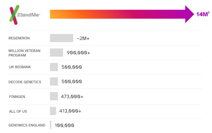 We believe the ability to identify, recruit, and characterize research participants based on genetics unknown to them is a critical capability for 23andMe to inform drug development and genetics research.