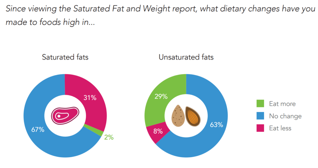 What we learned is that one month after viewing the Saturated Fat and Weight Report, many participants reported making changes to their diets – and the news was even better six months later.